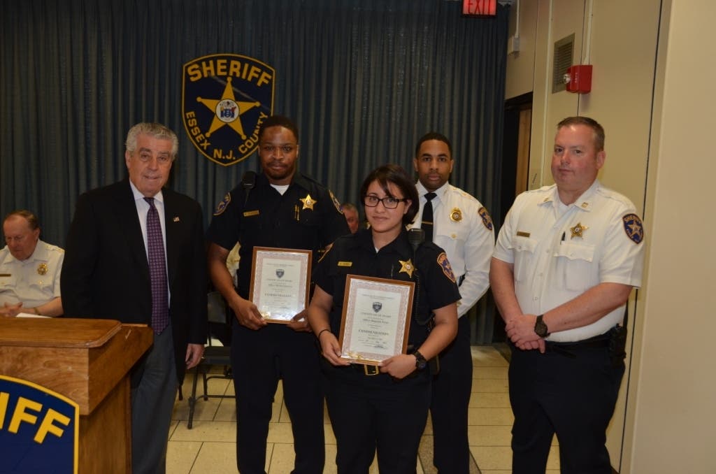 Also on hand to congratulate the officers were Undersheriff Amir Jones (2nd from right), a resident of East Orange, and Captain Richard Smith (right), a resident of Newark.