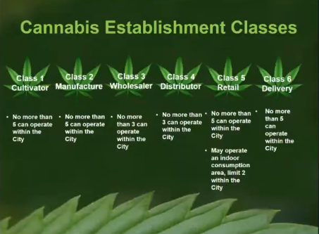 There would be a limit on the number – and types – of cannabis businesses. There would be a maximum of two "indoor consumption areas" allowed.