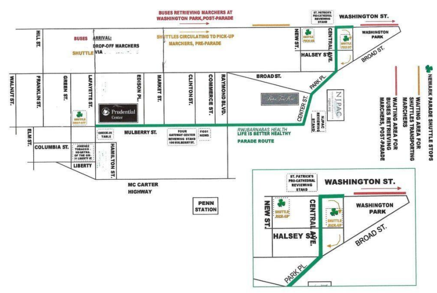 - 1 pm - THE SAINT PATRICK'S DAY PARADE Prudential Center - Four Gateway Center - NJPAC - St. Patrick's Pro-Cathedral. Feature: The 12th Annual Saint Patrick's Day High School Band Competition