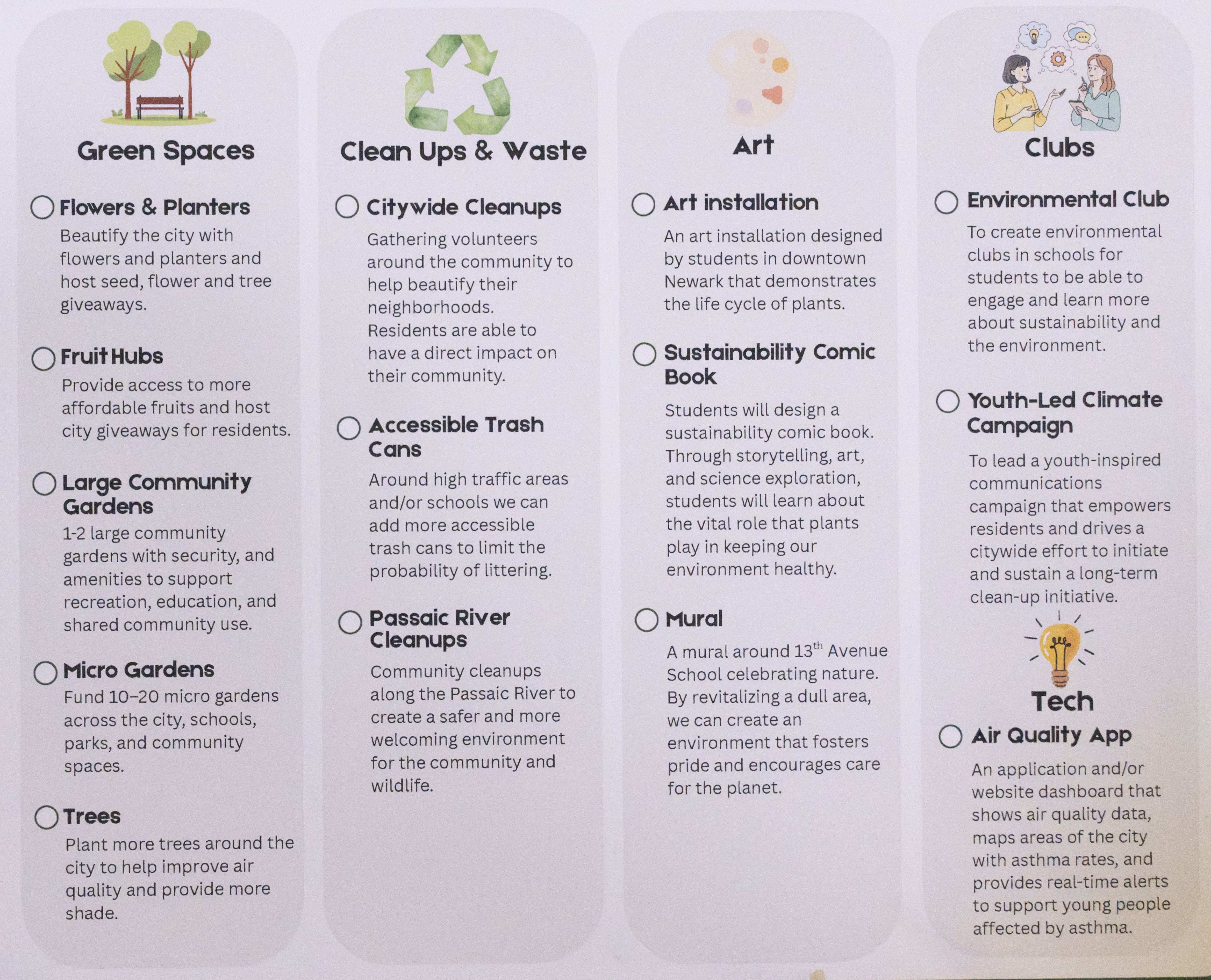 According to the mayor’s office, Gen Green is partially funded by a grant from the Victoria Foundation and the Participatory Budgeting Project, a Brooklyn-based nonprofit. The Participatory Budgeting Project’s work in Newark was made possible with support from the Robert Wood Johnson Foundation.