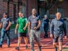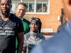 A group of state troopers from New Jersey paired up with community members during a teamwork-building exercise in Newark.