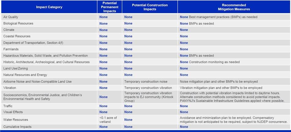 According to Port Authority officials, the assessment didn’t find any “significant, permanent impacts” from the plan. However, there are three “potential, temporary impacts” that may arise during construction, officials said, noting that mitigation measures are in place: