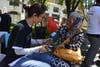 NEWARK, NJ - Physician assistant students with stethoscopes and a scale checked blood pressure and body mass index. Using spirometers, respiratory therapist-in-training measured lung function. And pharmacy students educated people on the safe disposal of medicine.