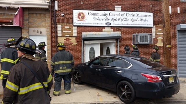 NEWARK, NJ — Newark police are searching for the driver of an allegedly stolen car who crashed into the Community Chapel of Christ Ministries building at 387 Hawthorne Avenue on Sunday afternoon. There were nine people inside the building when the vehicle crashed into the front door, authorities said.