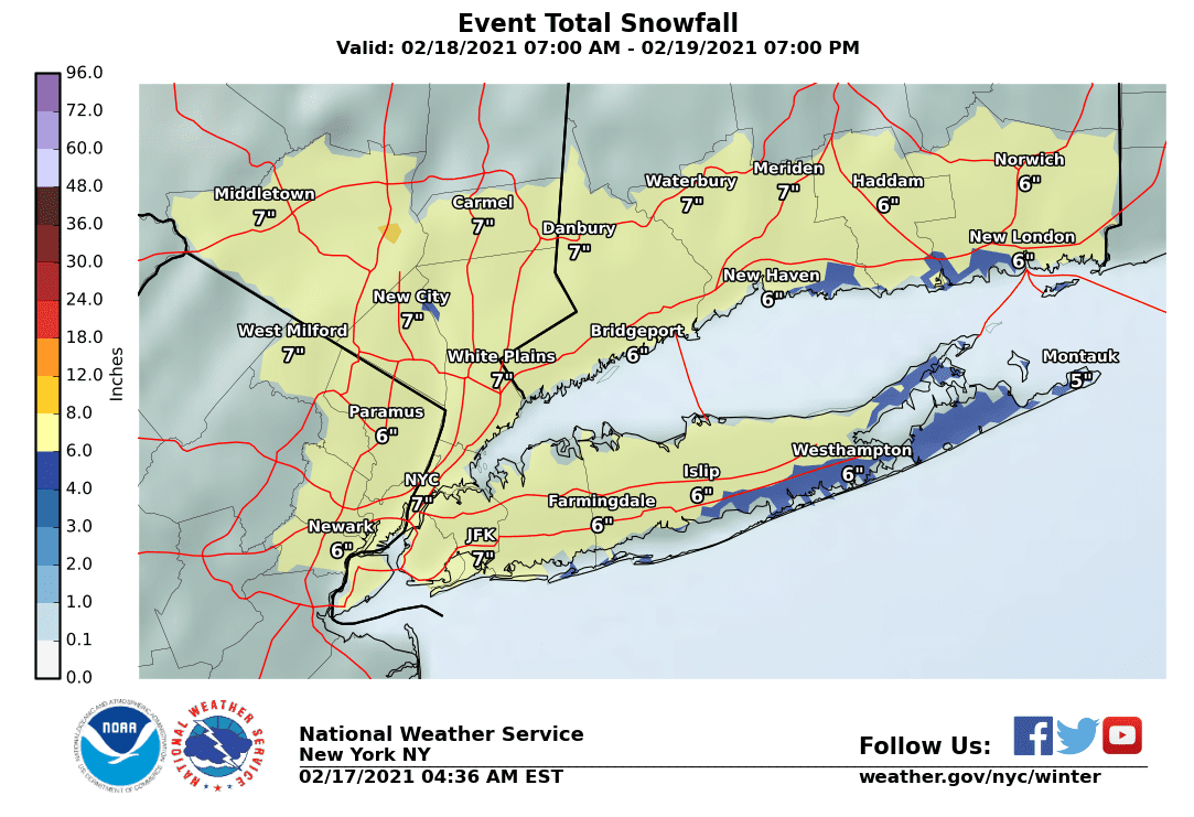 ESSEX COUNTY, NJ — A winter storm was expected to continue to impact the Essex County area on Thursday, bringing several inches of snow, ice or freezing rain along with it (see road impacts, snow estimates and forecast below).