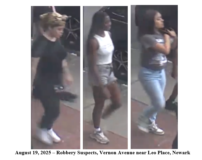 “At approximately 5 p.m., a female victim exited an NJ Transit bus at Randolph Place and Clinton Place. She was followed by the three female suspects, who also exited the bus, to the location of Vernon Avenue near Leo Place. The suspects grabbed the victim by her hair, shoved her to the ground, kicked and punched her, before robbing her of her cell phone and purse containing $250 in cash. The suspects then ran westbound on Clinton Place. The victim followed the group in an attempt to get her belongings back, but they assaulted her again in front of University High School on Clinton Place.”