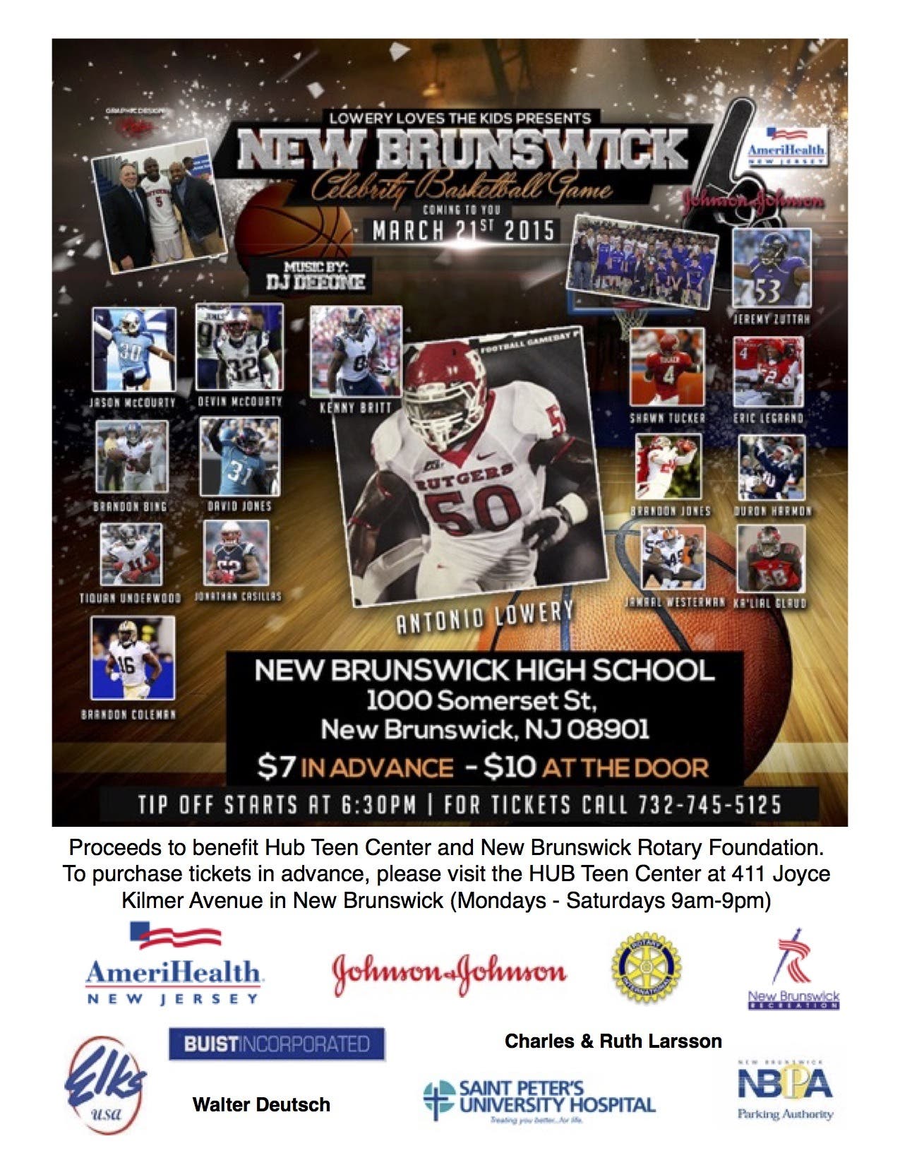 A total of 17 football players, who have ties to to New Brunswick and are now affiliated with the NFL, will play in New Brunswick’s annual Celebrity Basketball Game on Saturday.