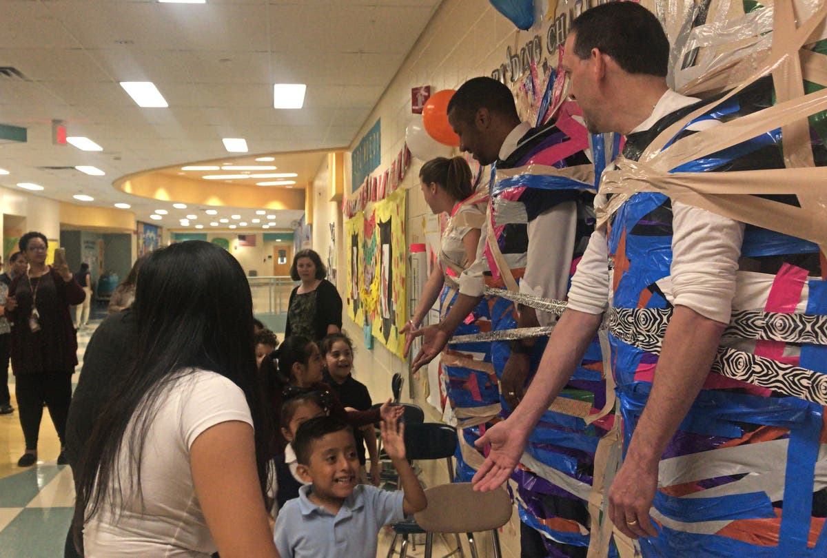 If the students at Lord Stirling Elementary School in New Brunswick read every day for the past month, they received a rather unique reward: The chance to duct tape some school administrators to the wall.