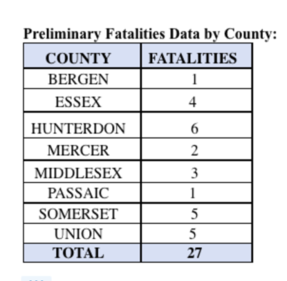 27 dead across New Jersey as of Monday