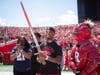 As he was honored as a Shining Knight of the Game, Anthony was surrounded by his parents, step-mom and dad, and his closest friends. He was also met in the south end zone by the Scarlet Knight mascot for a special Knighting ceremony. Alongside the Scarlet Knight, Anthony was saluted and promptly raising a sword in triumph to a rousing ovation from Scarlet Nation.