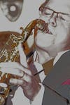 Second place went to Michael Tublin with his photo "Blowing," which captures saxophonist Todd Bayshore in a performance.