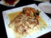 After much deliberation, we finally made our selections and discovered they were all winners. One of that evening’s special, a stuffed Mahi Mahi ($14.95) was succulent and well-seasoned; a Chicken Naples, chicken sautéed with sun-dried tomatoes, artichoke hearts and white wine sauce ($11.95), got a review of “awesome” and a scrumptious Veal Sorrentino ($13.95), sautéed veal layered with eggplant, melted mozzarella cheese and mushrooms in a sherry wine sauce, made you forget your manners and resort to sopping up the sauce with chunks of hot crusty bread so you wouldn’t miss one delicious drop.