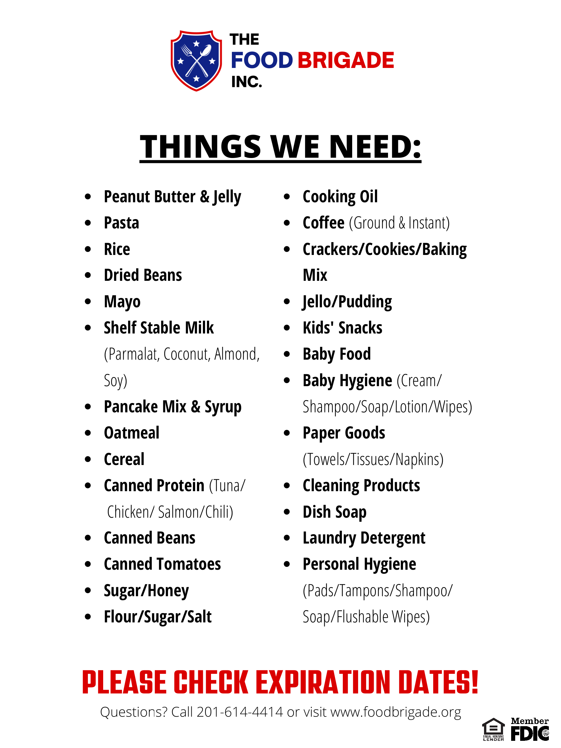 The lack of food security among New Jersey residents has increased 56% during the COVID-19 pandemic. Please join First Commerce Bank and The Food Brigade for our free Shred Day and Food Drive Event. Limit 3 boxes of shred per vehicle; boxes should be no larger than 24" x 15" x 10". All participants are asked to bring a food donation along with their shred (see below list).