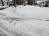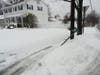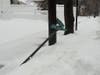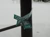 The accident most likely took place early Tuesday morning as the snow changed into an icy, wintry mix. The tire tracks were still visible in the slushy snow around noon on Tuesday, leading from the street directly over the curb to the damaged sign. The pole was knocked almost completely to the ground and both signs with the street names on them were bent.
