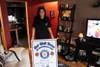 Near the window sits a blue throw pillow, made by the Bergen County police academy class, which reads in three lines “Rachel Morgan 431 True Hero.”