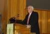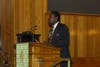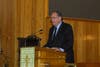 After a moment of silence, Leonard Vernon, a survivor of the attacks on the Twin Towers, told his story of how he escaped on September 11, 2001. He exited the WTC just in time to watch it fall and remembers "I was so sickened by what I saw, that I just started walking uptown, to my wife."