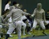 Ramapo subbed in most of their second string in the second round of sabre and foil but a number of unexpected defeats which left the score at 9-6 after the foil round convinced the team that they should keep their epee starters in the meet.