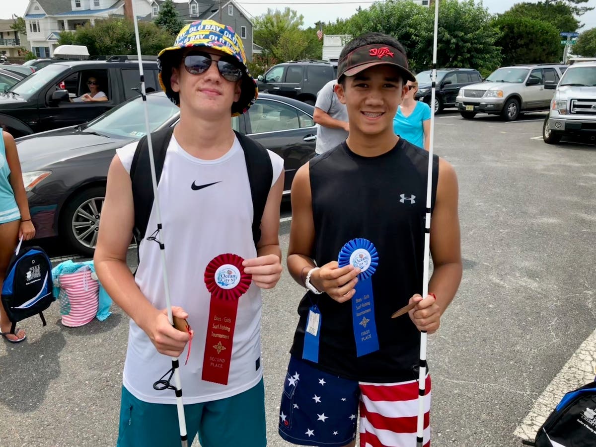 Adam Madkour (right) came in first followed by Andrew Mattia for the most fish caught in the 14-16 age group in the Ocean City Fishing Club's 43rd Annual Boys and Girls Surf Fishing Tournament that was held Saturday.