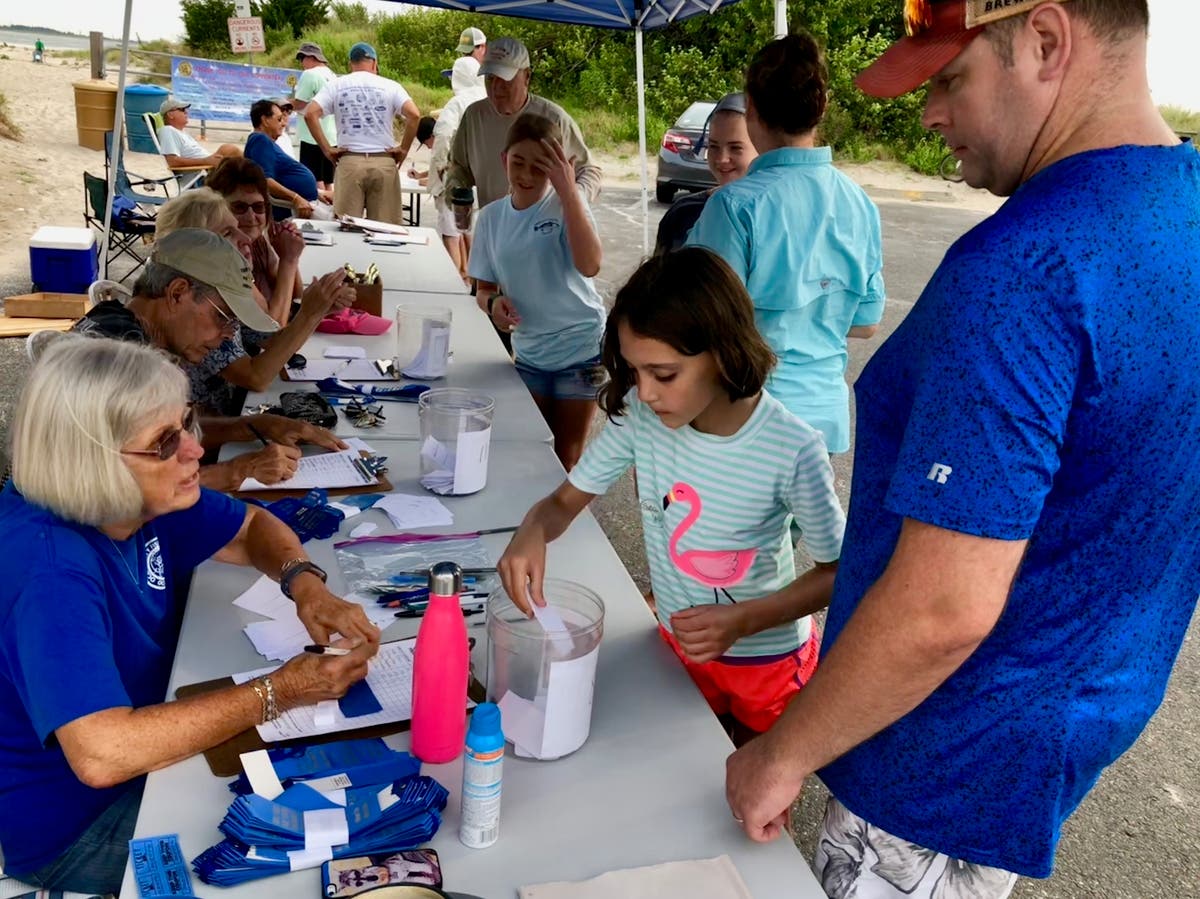 Fishing club volunteers had the youngsters’ parents or guardians sign waivers for insurance purposes and register the boys and girls. Club members also manned the beach with measuring devices to record sizes of the fish the youngsters caught.
