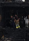 When the firefighters first arrived at the residence at about 3:45 p.m., the fire was already tearing through the second floor of the home, but because two neighboring houses were exposed to damage and because of strong northeast winds, the firefighters focused on first protecting those properties, McCulley said.