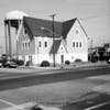 The first image shows the church circa 1945. Take note of the steeple on the building and the stained glass windows.