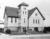 The second image shows the church in 1973. The steeple is gone -- it had been removed in stages because of leaks that rotted out the wood. The windows had also been changed.