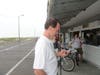 We waited out the light rain while munching on Oves doughnuts under the eatery's awning. Skeldon checked his phone again.