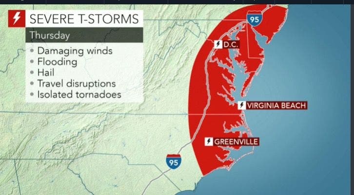 - Roadway flooding along with flooding in areas of poor drainage is also possible on Thursday, as well as flash flooding. Some small streams and creeks may leave their banks Thursday afternoon into Thursday night, the NWS said.