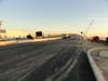 One lane of traffic in each direction now share the new span. When the second span is completed, each will carry two lanes of traffic.