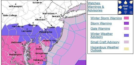 - For other areas along and south of the PA turnpike/Interstate 195 corridors, 2 to 5 inches of snow is expected. A winter weather advisory is in effect.
