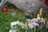 People left flowers, candles, handwritten notes, and stuffed animals at the base of a school sign Friday, and a flag was flown at half-staff against a gray sky. There were several police officers on campus. No students or teachers were outside.