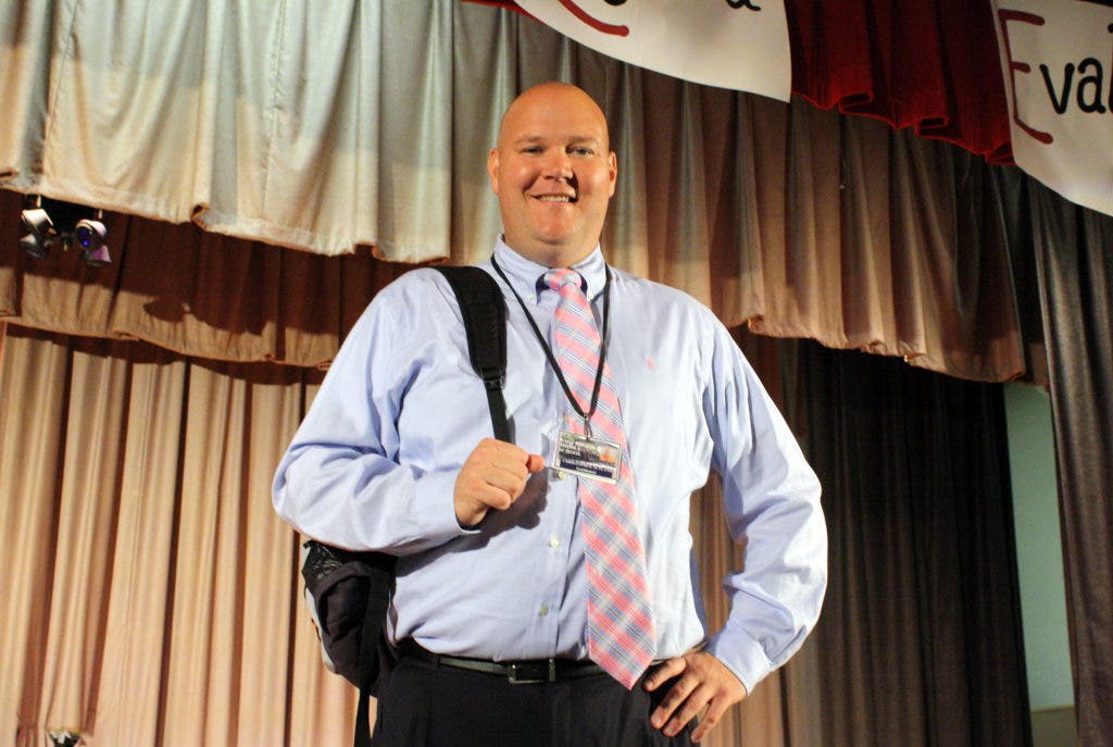 guidance counselor Christopher Nutland compared the stress caused by bullying to the weight of a backpack at a talk for fifth graders at on Wednesday.