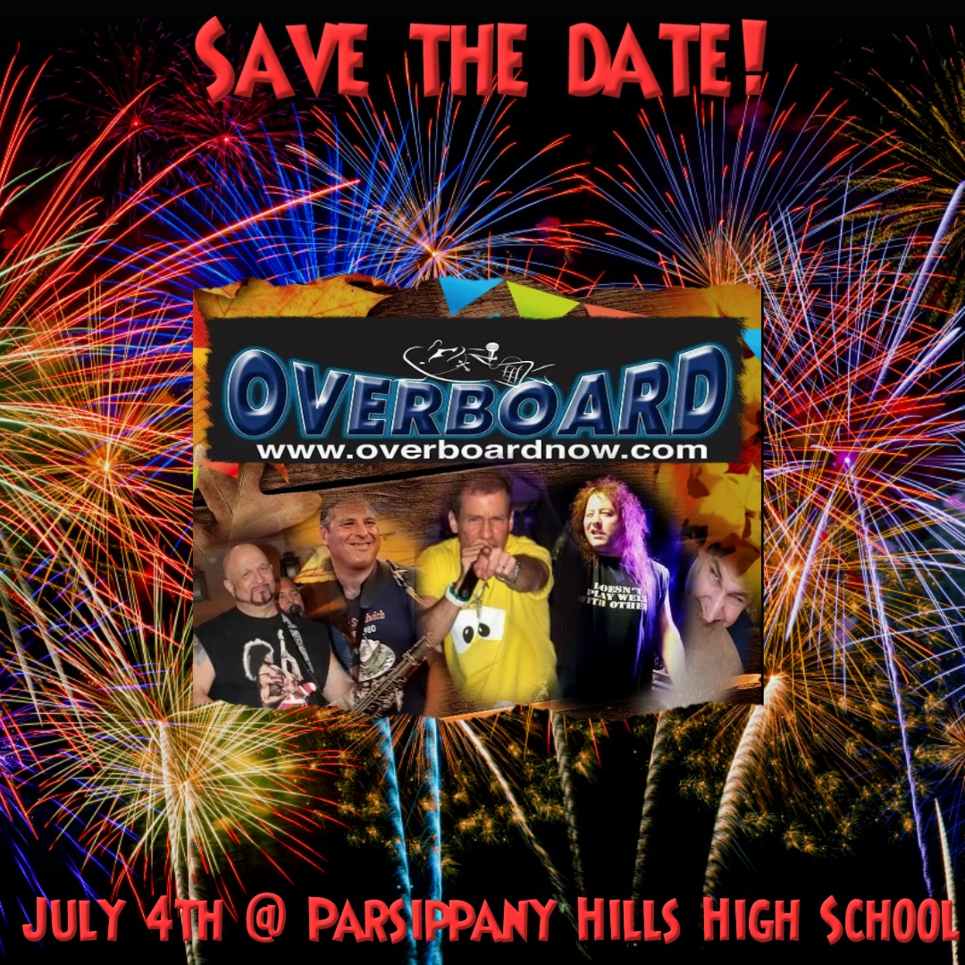 "Mayor James R. Barberio reminds you to save the date → July 4th Concert and Fireworks featuring Parsippany's own 'OVERBOARD'"