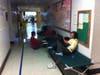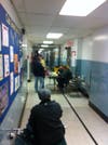 On Tuesday, the site was filled with cots; they are now gone. Tables are in place for residents to sit and enjoy games and conversation. Hot coffee and snacks are available for visitors, and there are outlets throughout the school's corridors so people can charge their cell phones, laptop computers.