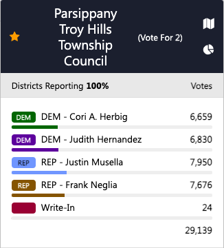 Democrats entered the election with Parsippany's mayorship and two of the five council seats. But the current results would make the township unanimously Republican on its governing bodies.