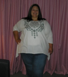 Since 2009, she’s lost 120 pounds, and a total of 49 inches (including nine inches off of each calf muscle, eight and a half inches off the hips and five off the waist). According to her, her original Body Mass Index (BMI) was 72 percent, and now resides at a much lower number in the 60s. She has gone from a size 32, to a lower 18-20 in dresses, and 22 in jeans.