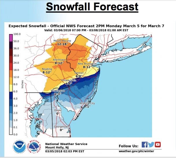 The nor'easter will impact the entire state, and it's considered a coastal storm that will bring a wintry mix of precipitation for Central and South Jersey and the Jersey Shore.