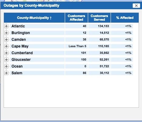 Here are summaries for each area, and how many power outages they had as of 9:30 a.m.
