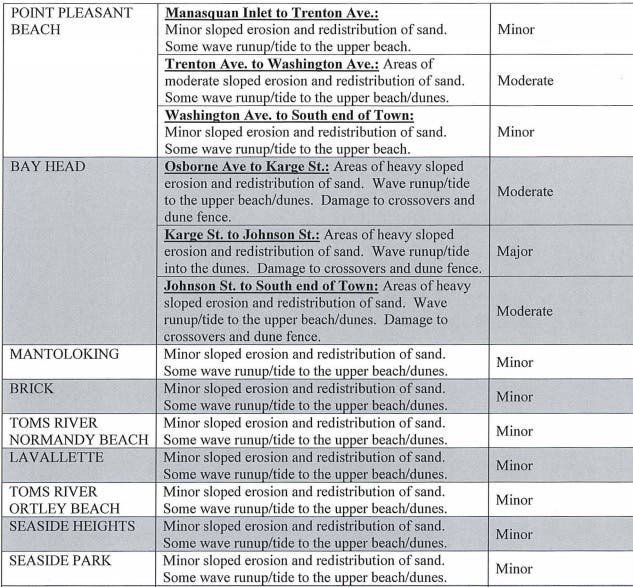 A state report shows that Point Pleasant Beach beaches were damaged by a subtropical storm and left with erosion.