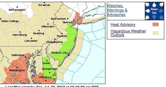 A hazardous weather outlook has been issued for New Jersey on Saturday as forecasters expect thunderstorms producing damaging wind and poor-drainage flooding to hit the region.