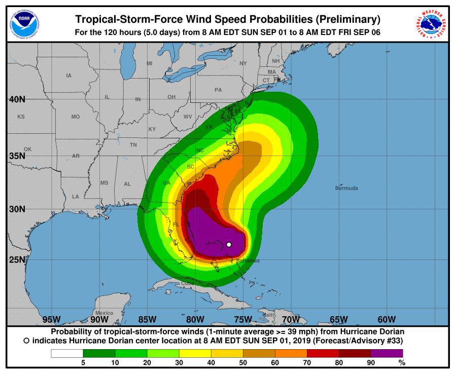 Martucci said a fast-moving high pressure system will likely push Dorian out to sea. But if the pressure system moves slowly, Dorian could travel north and impact New Jersey just as Hurricanes Irene and Floyd did in 2011 and 1999, respectively.