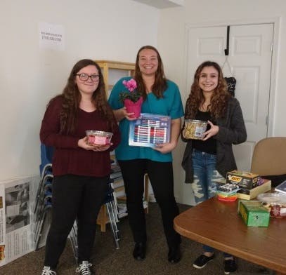 *Pictured above with the first round of donations: Lauren Nickerson and Paloma Loperena, Spanish Honor Society students of Middletown South, with Jessica Kostenblatt, Coordinator of Red Bank Resource Network of the Mental Health Association.