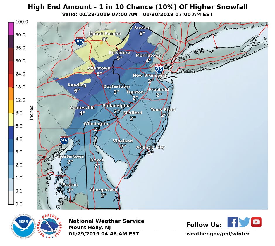 New Jersey Snow Totals, Town-By-Town - 1/30/19