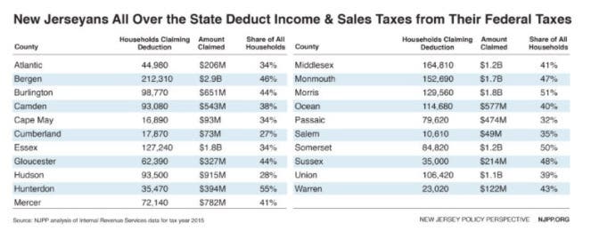 New Jersey Policy Perspective said eliminating these deductions "would make it harder for states like New Jersey to raise enough revenue to provide essential services and make public investments that benefit all residents."