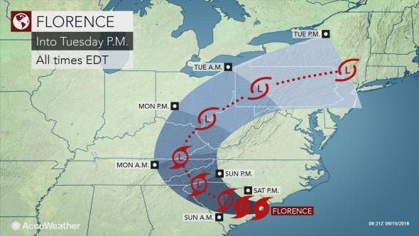While Florence will spend days in the South, the storm will survive long enough to bring rounds of heavy rain and the risk of flooding to the central Appalachians and northeastern United States next week, according to AccuWeather.