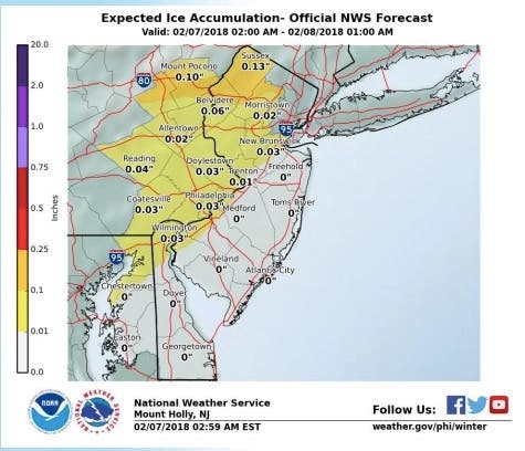 The snow is expected to give way to ice, sleet and rain that could make your afternoon commuter very slippery. The NWS also offered its latest ice projections.