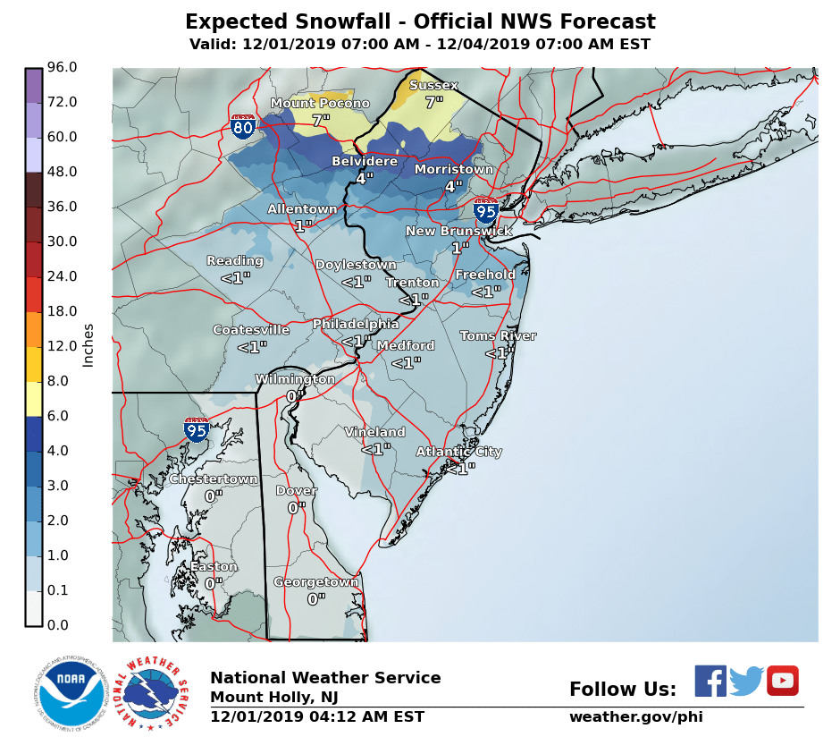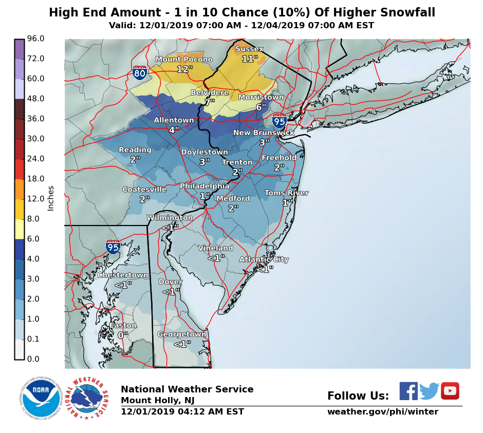 Parts of New Jersey could get nearly a foot, and those predicated snow totals have grown since Saturday morning (see expected snow totals below).