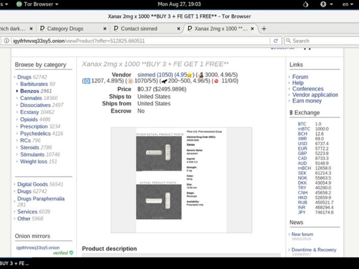 - Anderson operated two dark web storefronts, using the screenname “sinmed,” to sell the purported alprazolam and other controlled substances. Codd and McCarty assisted with manufacturing and equipment procurement.
