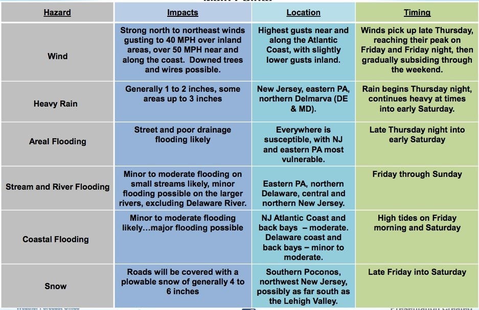 - This storm is forecast to become a major nor’easter, and all the nasty elements associated with a nor’easter could affect our area into the weekend (strong winds, heavy rain, inland flooding, coastal flooding, and beach erosion).