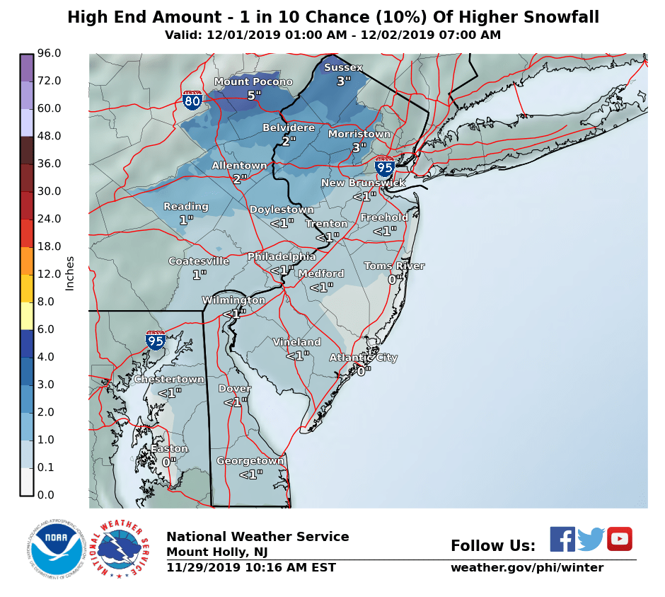 The NWS has issued a hazardous weather outlook for all of New Jersey, saying the next system could bring a wintry mix of precipitation Sunday morning before changing to rain later in the day. Accumulation numbers have also been released (see below).